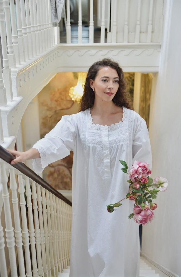 Ladies White Nightdress With Ruffled Broderie Anglaise 'Eliza'