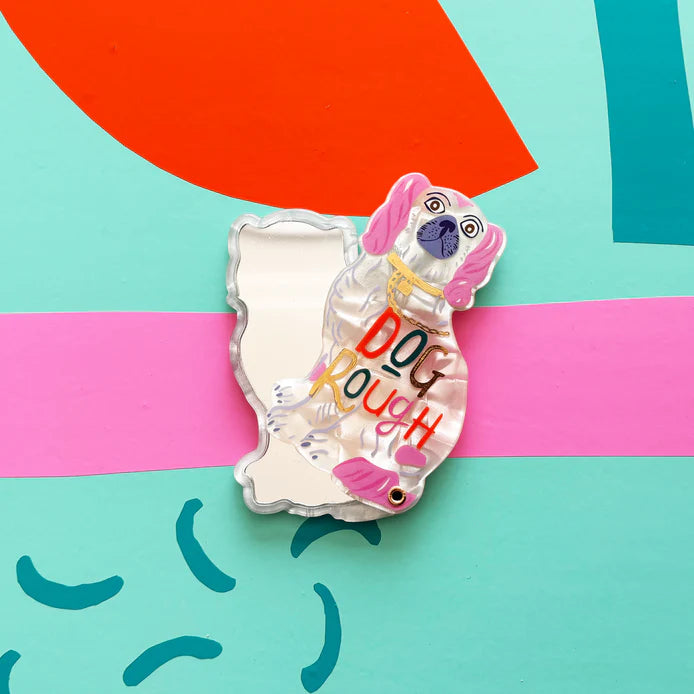 You won't be feeling dog rough after you check out your looks on the go with this cheeky Doghouse slide compact mirror!